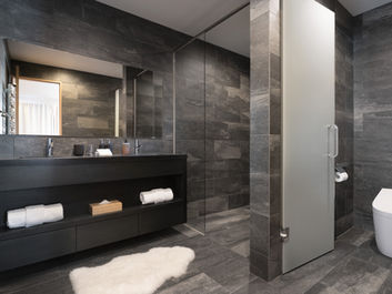 To the rear of each villa, the bedrooms are carefully placed to ensure privacy and tranquility, facing the serene forest. This thoughtful division of space balances openness with seclusion, making the Awayuki Villas a perfect retreat for those seeking modern luxury infused with timeless Japanese design elements.